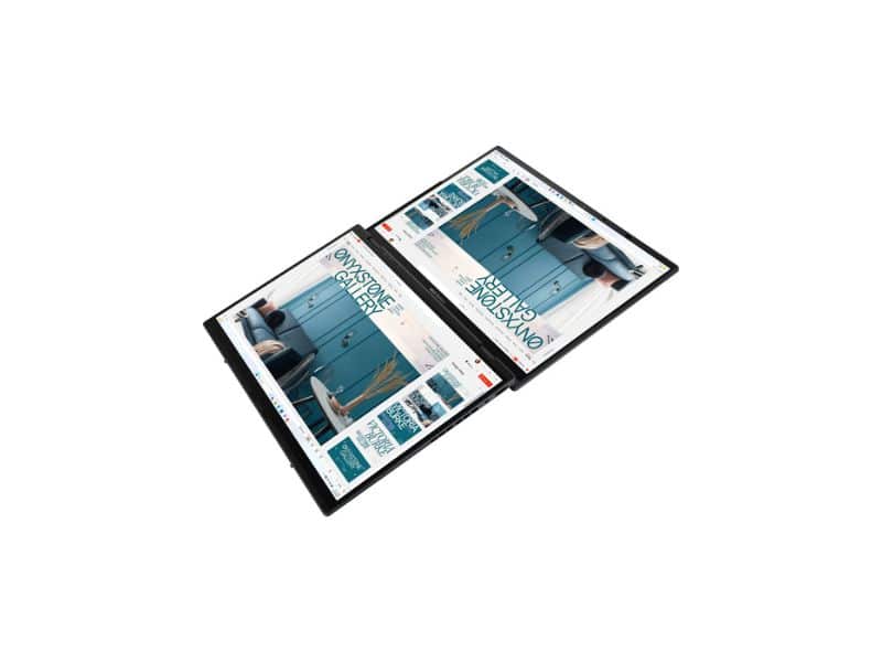 - Display : Dual 14.0-inch 3K OLED (2880 × 1800) touchscreen, 16:10 aspect ratio, 120Hz refresh rate, 0.2ms response time, 400nits brightness, 500nits HDR peak brightness, 100% DCI-P3 color gamut, 1,000,000:1 contrast ratio, VESA CERTIFIED DisplayHDR™ True Black 500, 1.07 billion colors, Pantone Validated, glossy display, 70% less harmful blue light, TÜV Rheinland-certified, SGS Eye Care Display, ~91% screen-to-body ratio, Stylus support